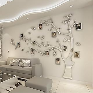 sdtdia Acrylique Photo Cadre Arbre Sticker Mural DIY Mode Arbre Autocollant 3D en Forme De Luxe Arbre Décoration (L, Argent-R)