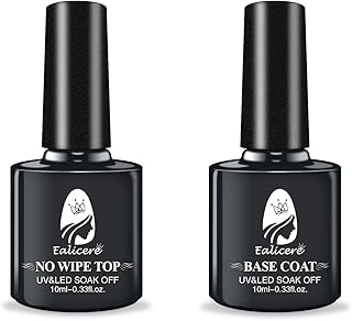 No Wipe Top Coat et Base Coat,Semi Permanent Base Top Coat Vernis de base et finition Manucure Kit pour LED Gel Polish Extension Polygel 2 Pcs 10ml