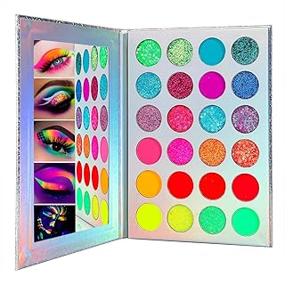 Palette de fards à paupières 24Colors Glow, palette de fards à paupières fluo Glow in the Dark, Kit de maquillage Halloween UV Glow Ombres à paupières Pigment lumineux