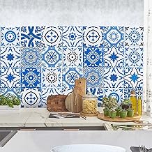 kina (54 pièces) Autocollants de Carreaux Taille 10x10 cm Fabriqué en Italie - PS00048 PVC Autocollants pour Salle de Bain et Cuisine Carreaux - Design Bleu Portugais