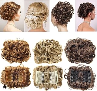 Postiche Chignon Extensions a Clip Cheveux Naturel Scrunchy Chignons Postiche Queue de Cheval Chouchou Updos Curly Hair Bun Extension Marron à blond
