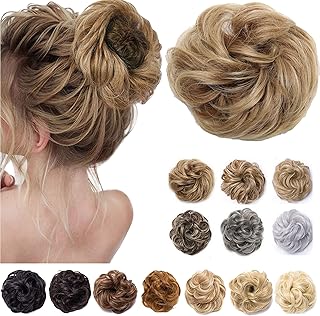 Cybelleza Postiche Chignon Extensions a Clip Cheveux Naturel Scrunchy Chignons VOLUMINEUX Postiche Queue de Cheval Chouchou Updos (Blond foncé)