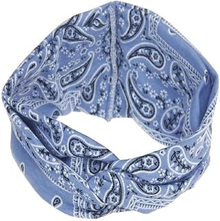 Conqueror Bandeau Turban de bandeau de bande de cheveux de Floral élastique de femmes de yoga tordu noué (bleu)