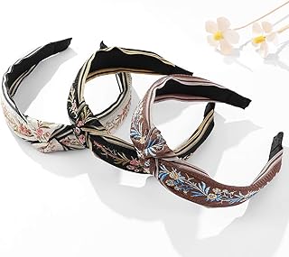 Sethexy Boho Bandeau Élastique Noué Bandeau Impression de fleurs Enveloppement de la tête 3 pièces Yoga Bande de cheveux Des sports Foulard Fonctionnement Voyage Bandeau pour femmes et filles