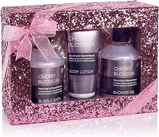 BRUBAKER Cosmetics - Coffret de bain & bien-être - Fleur de cerisier - 4 Pièces - Trousse à maquillage pratique - Boîte paillettes/Rose - Idée cadeau