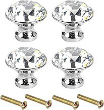 Fodlon Boutons de Meuble Cristal 4pcs Poignée Meuble Cuisine Vintage Bouton de Porte Diamant 3cm de Diameter Poignée Meuble Enfant Armoire Tiroir Cabinet Coiffeuse, avec 4 Vis