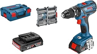 Bosch Professional 18V System Perceuse-visseuse à Percussion sans Fil GSB 18V-21 (avec batterie 2x2.0 Ah, jeu d'accessoires 40 pièces, dans L-BOXX) - Édition Amazon