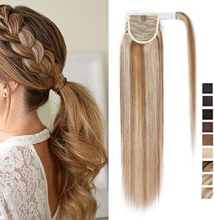 Rajout Cheveux Queue de Cheval Extension Queue de Cheval Vrai Cheveux [Tenu par Catogan Lisse] Extension a Clip 100% Remy Hair - 14'(35CM) 12P613#Brun Doré & Blond Blanchi