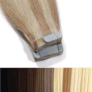 Extension Adhesive Naturel 20PCS - Rajout Bande Adhesive Extension Cheveux Naturel Adhesif Cheveux Humain Remy Hair - #18/613 Blond cendré méché Blond blanchi - 18 Pouces(45cm)