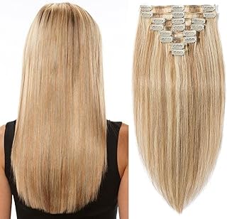 SEGO Rajout Cheveux a Froid Tie and Dye Extension Cheveux Naturel a Clip - 40 cm 12P613#Brun doré & Blond Blanchi - [Volume Standard] 100% Remy Hair