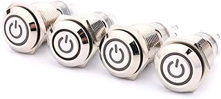 Bouton Poussoir en Métal, Bouton d'alimentation Poussoir à Verrouillage, 1 pièces 12V LED Bouton Poussoir en Métal Bouton Poussoir en Métal étanche LED Interrupteur Marche/Arrêt pour Véhicules