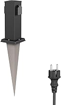ledscom.de Colonne de Prise Polly avec Piquet de Terre et câble de 2m pour l'extérieur, Deux Prises, Acier Inoxydable, Angulaire, Noir, 27cm