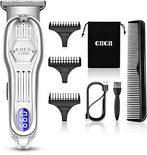 Tondeuse Cheveux Hommes, CIICII Tondeuse Barbe Homme Tondeuse Cheveux Professionnelle Sans Fil (8Pcs T Lame Rechargeable Écran LCD Sac Voyage) pour Coupe de Cheveux Bricolage Domicile Coiffeur